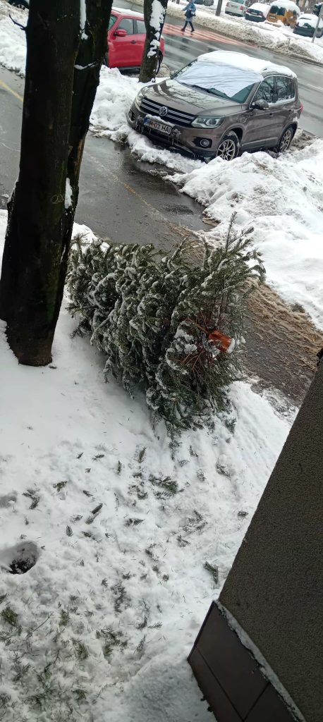 Totul a început, aparent, cu „nimicuri”. Azi, 15 ianuarie 2026, un brad de Crăciun cu globuri a fost abandonat în fața blocurilor… nu ale celor care i-au folosit, ci în fața locuințelor altor oameni. Un gest mic, spun unii. Un gest de lipsă totală de respect, spun vecinii care s-au trezit cu mizeria la ușă.