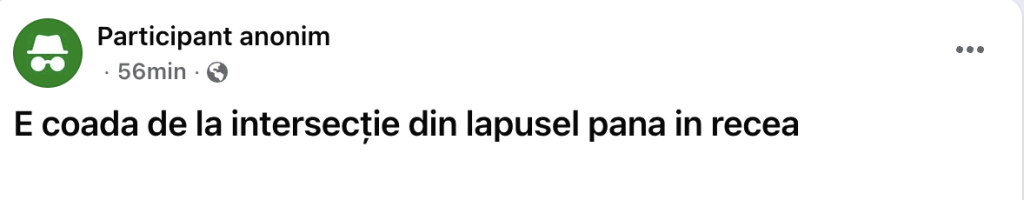 „E coadă de la intersecție din Lăpușel până în Recea”, a transmis un participant la trafic.