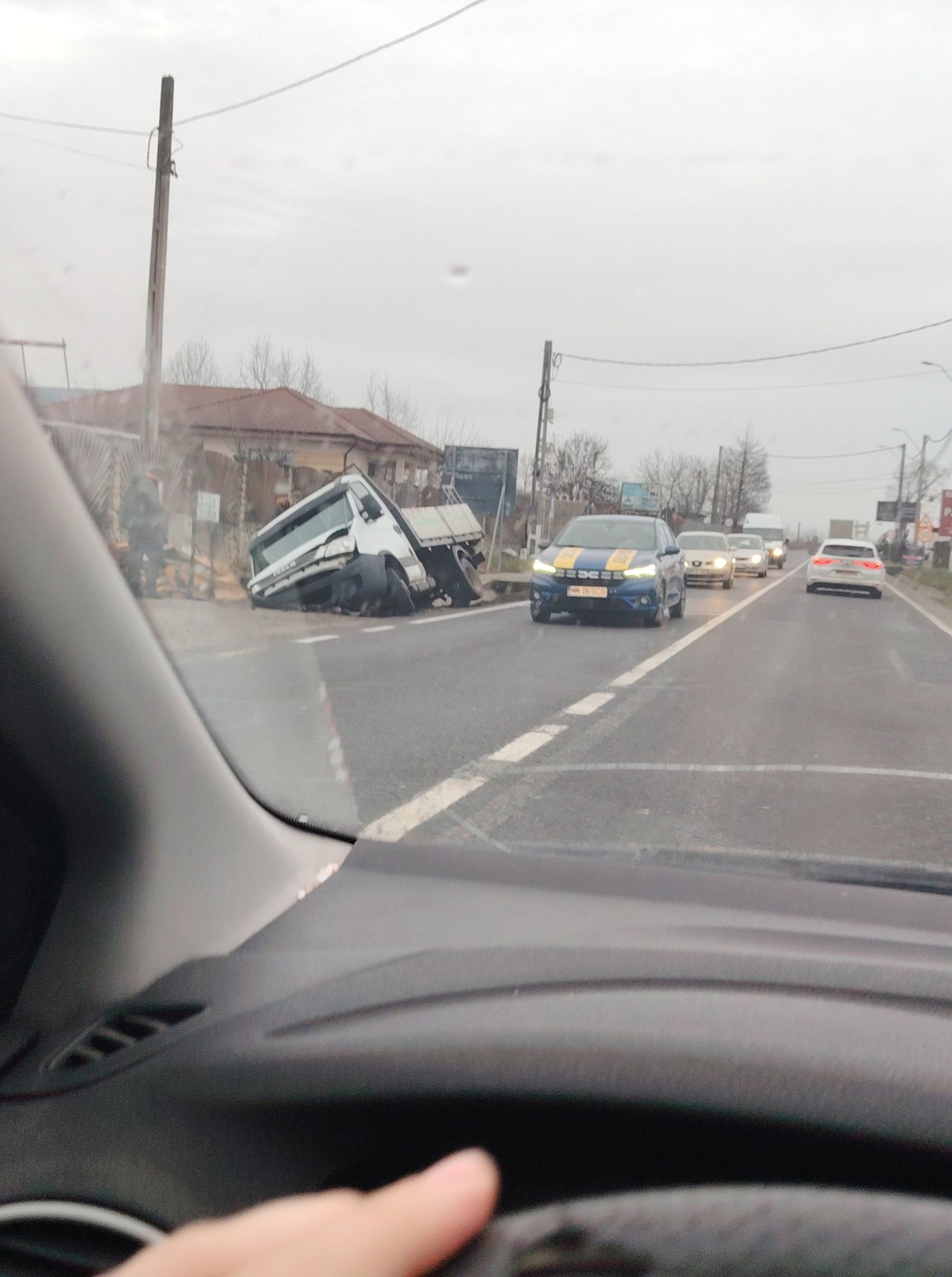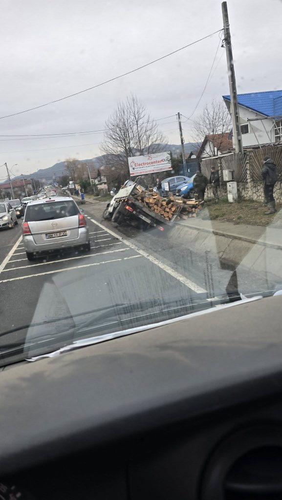 Un incident rutier a avut loc astăzi, 28 ianuarie, în jurul orei 16:30, în orașul Tăuții-Măgherăuș, unde o autoutilitară încărcată cu material lemnos a părăsit partea carosabilă și a ajuns în șanț.