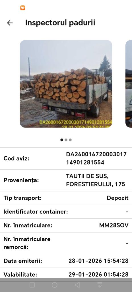 Potrivit aplicației Inspectorul Pădurii, transportul era însoțit de aviz de însoțire, conform legislației, iar lemnul nu ridică suspiciuni de proveniență ilegală.