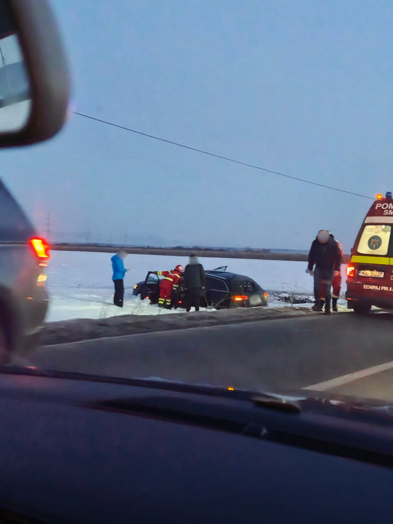 Potrivit primelor informații, un autoturism a ieșit de pe partea carosabilă și a ajuns în șanțul de pe marginea drumului. La fața locului a intervenit un echipaj SMURD, pentru a acorda îngrijiri medicale persoanelor implicate.