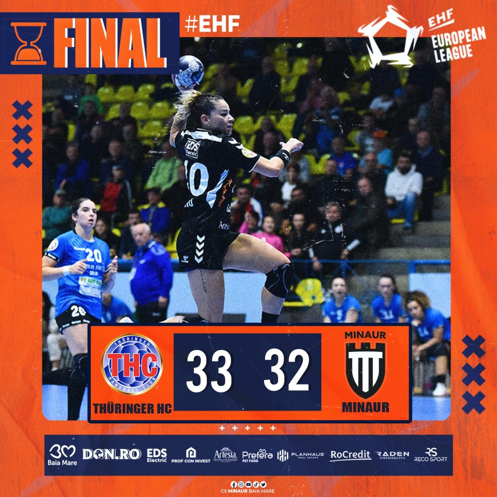 CS Minaur Baia Mare a fost foarte aproape de o nouă victorie importantă în EHF European League, dar a cedat la limită, 33-32, pe terenul formației germane Thuringer HC, deținătoarea trofeului, într-un meci extrem de echilibrat disputat la Bad Langensalza.
