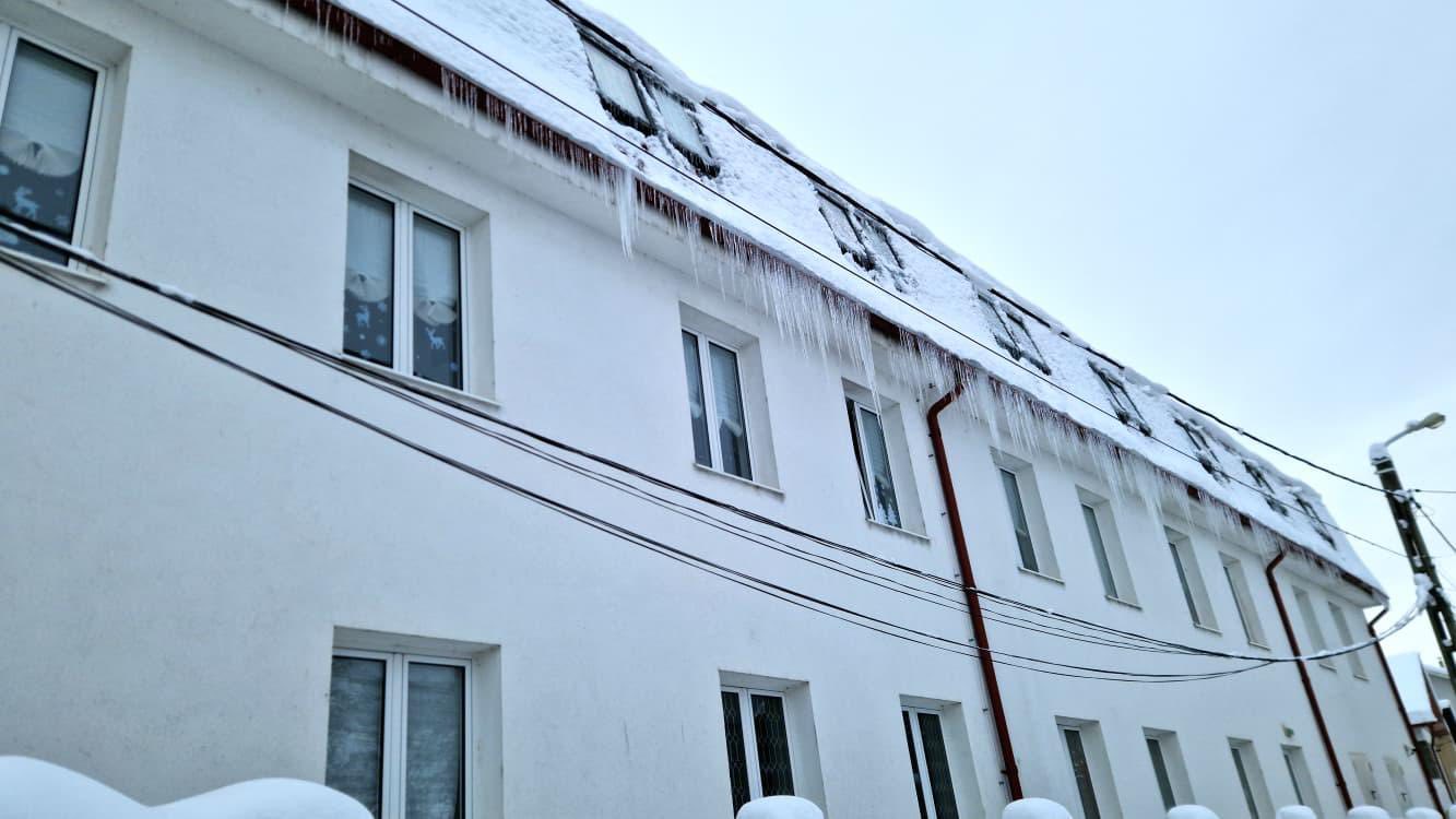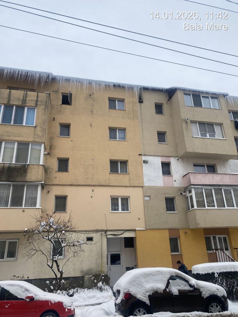 Temperaturile scăzute din ultima perioadă au favorizat formarea sloiurilor de gheață și a țurțurilor pe acoperișurile imobilelor din municipiul Baia Mare, situație care poate pune în pericol siguranța pietonilor și a participanților la trafic.