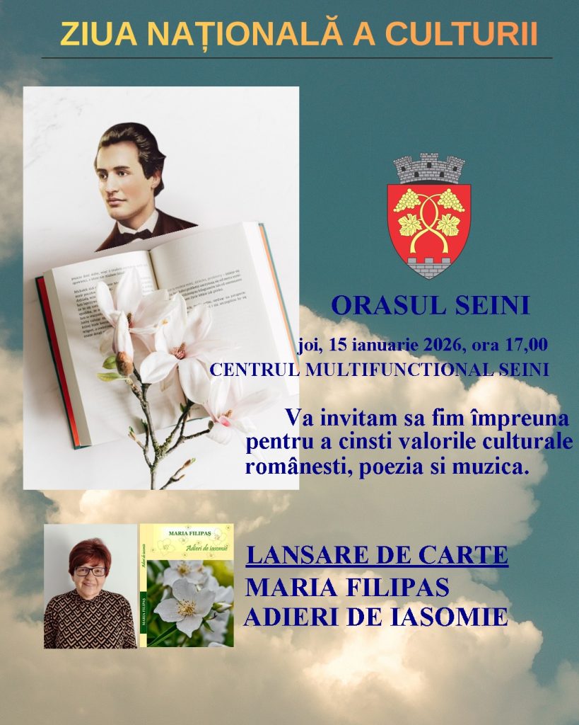Întâlnirea va avea loc joi, 15 ianuarie 2026, de la ora 17:00, la Centrul Multifuncțional Seini, unde publicul este invitat să fie împreună „pentru a cinsti valorile culturale românești, poezia și muzica”.