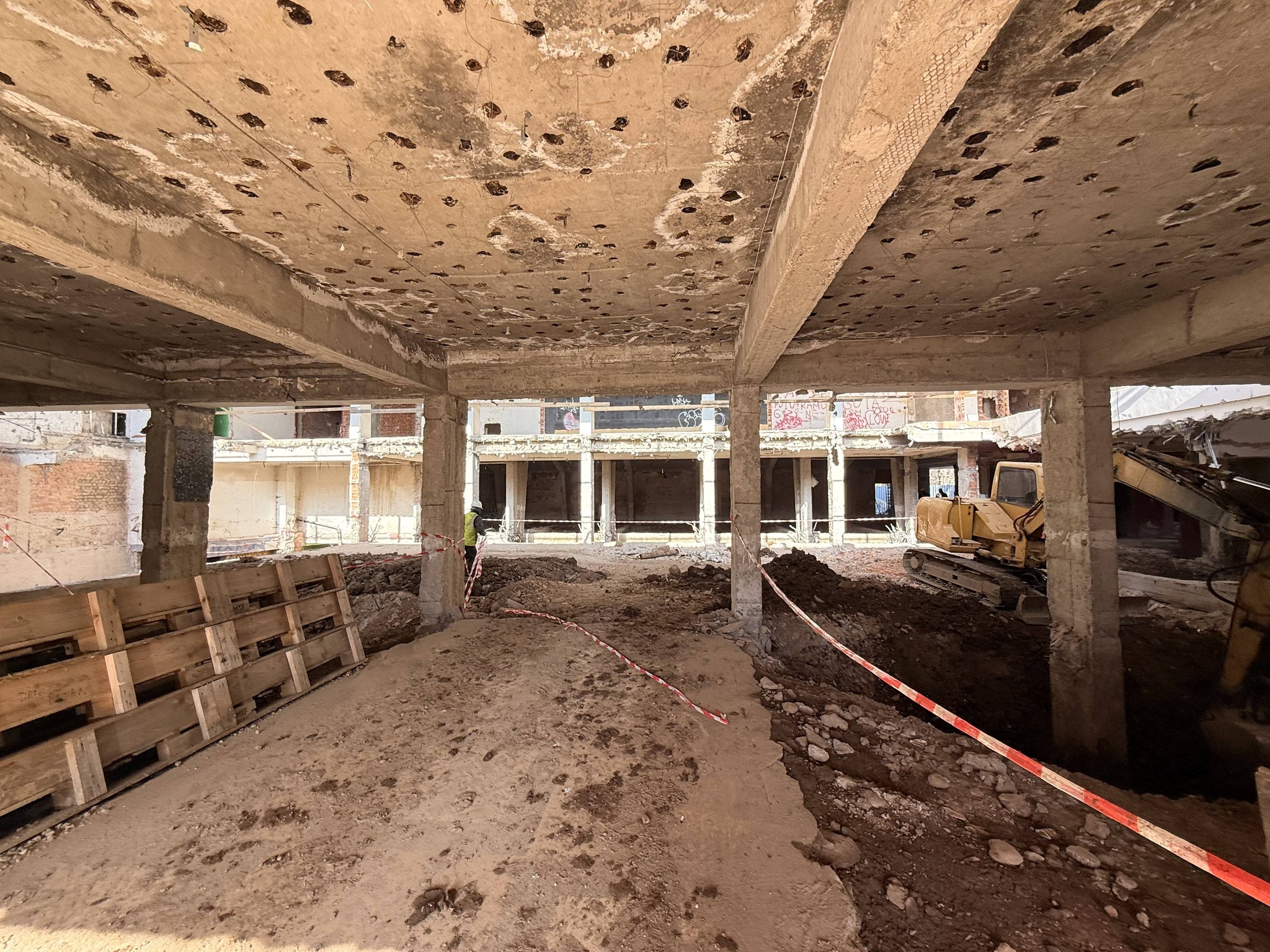 Imaginile surprinse în luna martie arată stadiul actual al lucrărilor, în interiorul clădirii fiind deja demarate intervențiile necesare pentru consolidarea structurii și pregătirea etapelor următoare de modernizare.