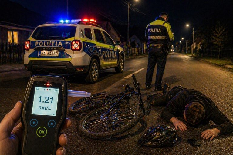 Un tânăr de 21 de ani a ajuns la spital după ce a căzut cu bicicleta pe o stradă din comuna Botiza. Incidentul s-a produs în dimineața zilei de 26 aprilie, iar testarea cu aparatul etilotest a indicat o valoare de 1,21 mg/l alcool pur în aerul expirat.